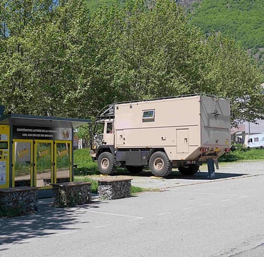 Het roer moet om... Met Bulletje kunnen we niet, om in Italië te komen, door de Frejustunnel. Dus we besluiten een bergweg te nemen over de Col du Glandon. Maar waar we al een beetje bang voor waren, blijkt helaas waar te zijn. De pas is nog afgesloten. Na ons vertrek om 10:00 uur en het boodschappen doen en tanken, keren we weer om. Na tweeëneenhalf uur staan we om 12:30 uur weer op precies dezelfde plek als waar we vanmorgen stonden. Tijd om eens heel goed de kaart te bestuderen....