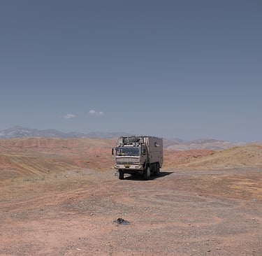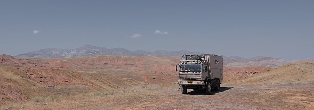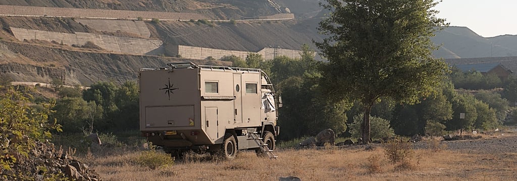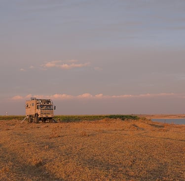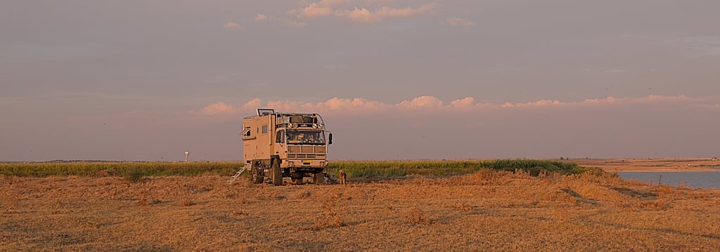 Met een gewone camper kun je hier niet komen. Een 4x4 die hoog op z'n wielen staat is noodzaak. Het is een buitengewoon mooie plek.