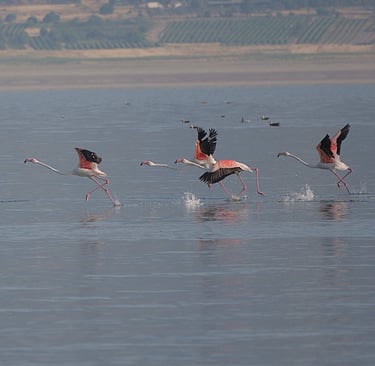 Het is een mooie rit naar Burdur. Prachtige omgeving en goede wegen. We staan bij het meer. Een hond die bij een schaapsherder hoort, vindt het prettig om bij ons in de schaduw te liggen. In de verte zie ik flamingo's en een soort kievit. Dat blijkt een sporenkievit te zijn. Op het eind van de middag zie ik ineens veel bijeneters die zich maar moeilijk laten fotograferen.