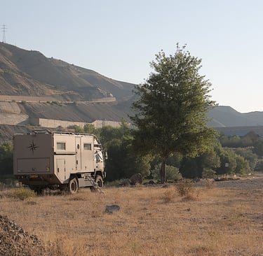 We moeten wat vaart maken. De planning is om vandaag 280 kilometer te rijden. Dat is voor ons een record. 25 kilometer voor onze bestemming waarvoor we van de hoofdroute afwijken, en op een weg komen die niet zo opschiet, zie ik niet ver van de weg een plek die veelbelovend is. Het voordeel van niet verder rijden is dat het ons vandaag maar ook morgen al gauw een uur scheelt. En als we niet verder rijden, staan we ook veel hoger. Bijna op 1900 meter terwijl de beoogde plek op minder dan 1300 meter ligt. Dat scheelt in de temperatuur. Het is even manoeuvreren, maar dan staan we helemaal prima.