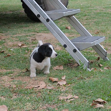 Tinka, geknipt en geschoren... Grasaren zijn hier niet het grootste probleem maar hele scherpe klitjes wel. Die gaan in haar vacht zitten en zijn moeilijk te verwijderen. Natuurlijk komen er ook klitten in de camper en daar wil je niet in staan met je blote voeten. Ik pak een schaar en scheerapparaat en kortwiek vooral poten, rug en staart. Door de kortere en gladdere vacht hopen we iets minder last te hebben van stekelige klitten.