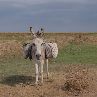 We maken een omweg van 6 kilometer om de stad Doğubayazit en vermijden zo de drukke straatjes. Het idee vandaag is dat we in een moerasachtig gebied komen met veel ooievaars tegenover Ağri Daği (Berg Ararat). Bij aankomst stap ik uit om te kijken of de grond niet te zacht is voor Bulletje. We willen liever niet in een moeras wegzakken. Maar het is allemaal kurkdroog en geen ooievaar te bekennen. De hoogste top van Ağri Daği ligt op een hoogte van 5.137 meter. Wij kijken uit op de lagere top van 3.693 meter hoogte. Die top is in de wolken gehuld. De Ağri Daği is de hoogste berg van Turkije.